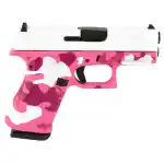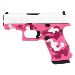 GLOCK, 43X, Striker Fired, Semi-automatic, Polymer Frame Pistol, Sub-Compact, 9MM, 3.41" Barrel, Skydas Cerakote Finish, Custom Pink Commando Camo Cerakote Finish by Skydas, Fixed Sights, 10 Rounds, 2 Magazines