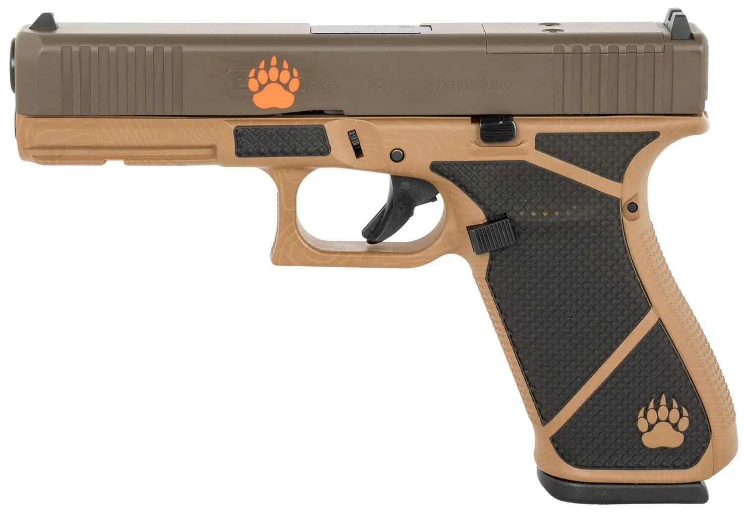 The Glock 20 features Glock's Safe Action system which provides a consistent trigger pull from the first to the last round; three automatic independently operating mechanical safeties. All three safeties disengage sequentially as the trigger is pulled and automatically reengage when the trigger is released; slide stop lever and the magazine catch are easily operated with the shooting hand. The advanced surface treatment of the slide minimizes light and reduces wear and tear and is corrosion resistant, even when operating in saltwater conditions. It has the same advanced surface treatment as the slide. Its extractor serves as a loaded chamber indicator to comply with the laws of certain states and its position may visually and physically indicate whether there is a cartridge in the chamber of the pistol. The Gen4 model features a modular back strap system makes it possible to instantly customize its grip to accommodate any hand size. The reversible magazine catch makes it ideal for left and right-handed shooters. Includes 3 magazines, mag loader, cleaning set, pistol case and gun lock.