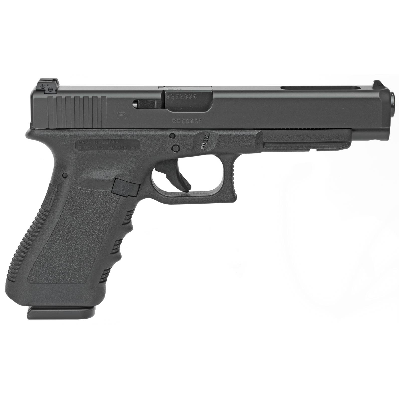 GLOCK, 35 Gen3, Striker Fired, Semi-automatic, Polymer Frame Pistol, Full Size, 40 S&W, 5.31" Barrel, Matte Finish, Black, Adjustable Sights, 10 Rounds, 2 Magazines