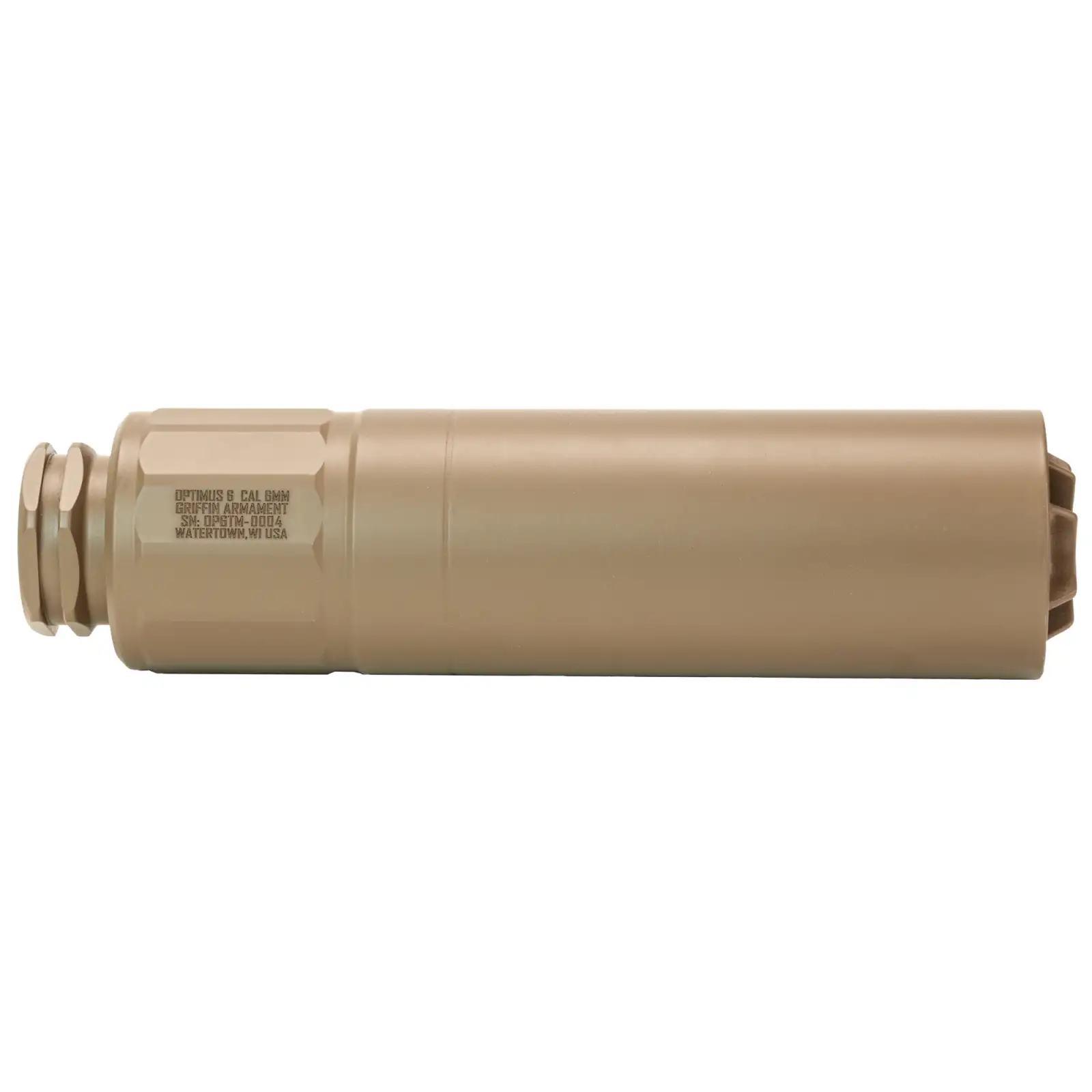 Griffin Armament Optimus 6, Suppressor, 6.68" Long, 6MM, 17-4 Stainless Steel Construction, Includes Includes 1/2x28 Taper Mount EZ-Brake, Cerakote Finish, Flat Dark Earth GAOP6TMFDE-W