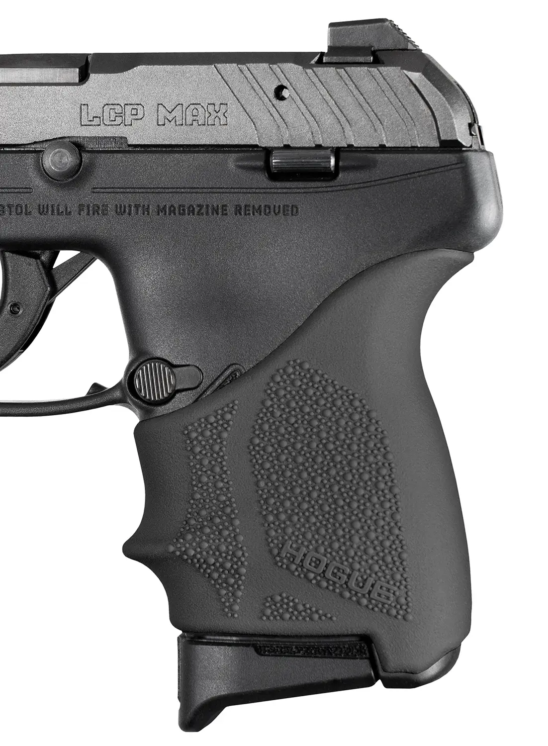 Gentle palm swells fit comfortably in hand. Top finger groove naturally positions fingers for optimal grip. Textured with Hogue's famous Cobblestone pattern for increased comfort and grip. Beavertail cushions the hand on recoil and offers increased hand comfort higher on the grip. Made from long lasting durable thermoplastic elastomer that ages gracefully for years of service. Designed for a tight and secure fit engaging with the texture and contours of the firearm's frame
