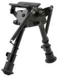 Harris bipods clamp to most Q.D. stud equipped bolt action rifles, and have a sling attachment provision. Spring loaded folding legs are quickly adjustable for height. Manufactured with heat treated steel and hard alloys, bipods have a black anodized finish.