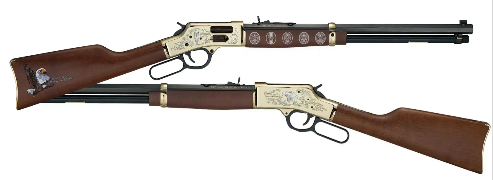 Henry Repeating Arms Big Boy Eagle Scout Centennial Tribute 2nd Edition, Lever Action Rifle, 44 Magnum, 20" Octagon Barrel, Brass Receiver, Engraved Receiver/Stock/Forearm, Side Load Gate, Fully Adjustable Semi Buckhorn Sights, American Walnut Stock, 10 Rounds H006GES2