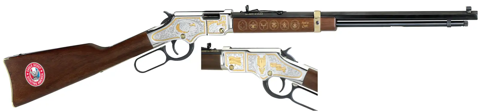 Henry Repeating Arms Golden Boy Eagle Scout Trubute 2nd Edition, Lever Action, 22LR, 20" Octagon Barrel, Brass Receiver, Engraved Receiver/Stock/Forearm, Walnut Stock, Adjustable Sights, 16 Rounds H004ES2