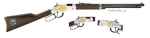 A symbol of American Pride, this unique Henry Trucker's Tribute Edition is a testament to America's appreciation for truckers and their families. This rifle features a traditional octagonal barrel, outfitted with classic fully adjustable buckhorn sights. On the right side of the rifle is an image of an eastbound 18-wheeler moving commodities across the country and the left side features a convoy of trucks heading west. Heidi Roos hand engraved the 24K gold banners that read Truckers Move America and Bound for Glory respectively. The .22 LR's tubular magazine holds 16 rounds of .22LR and 21 rounds of short. Rifles come drilled/tapped for easy scope mount installation and include a brasslite barrel band.