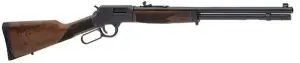 This Big Boy Steel features a round barrel and checkered walnut furniture on a matte-finished blued steel frame that is drilled & tapped for optional scope mounts. Other features include Western-style sights, and a sliding transfer bar "safety" system in its hammer.