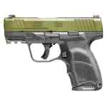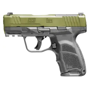 Heckler & Koch CC9, Semi-automatic, Striker Fired, Polymer Frame Pistol, Sub-Compact, 9MM, 3.32" Barrel, Cerakote Finish, Black Frame, Cerakote Bazooka Green Slide, Front Night Sight, 12 Rounds, (1)-12 Round and (1)-10 Round Magazine 81001401