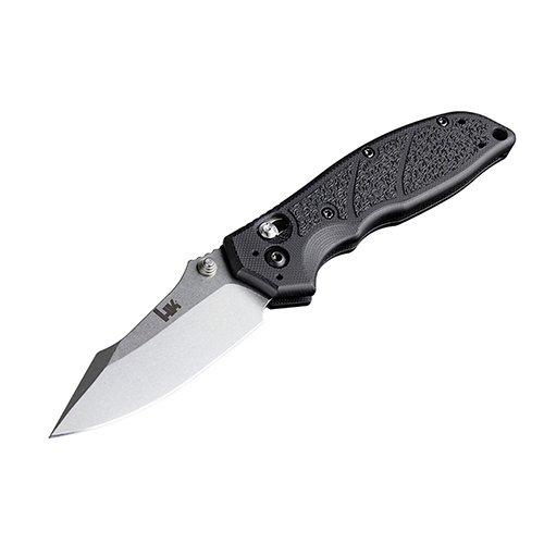 Hogue HK Exemplar, Folding Knife, 154-CM, Plain Edge, Clip Point Blade, 3.25", Stone Tumbled Blade Finish, Black G10 Frame with HK Texture 54156
