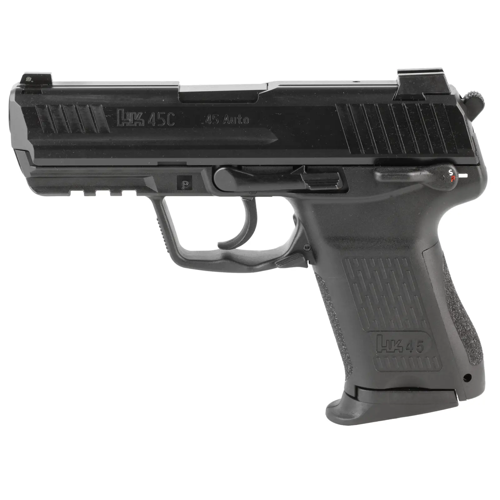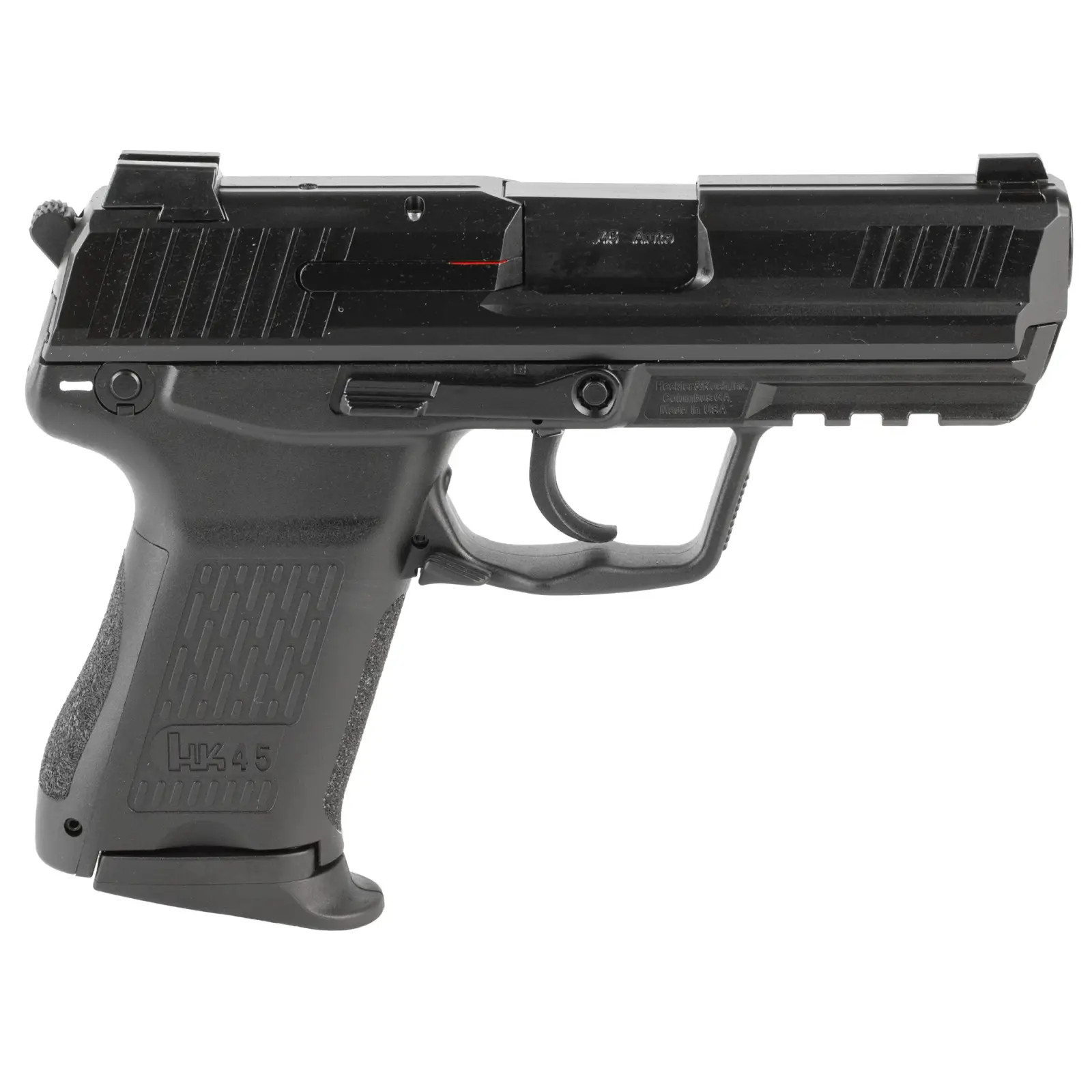 Heckler & Koch, HK45C, Semi-automatic, V1 DA/SA, Compact, 45 ACP, 3.94" Barrel, Matte Finish, Black, Manual Safety, Front Night Sight, 8 Rounds, 2 Magazines