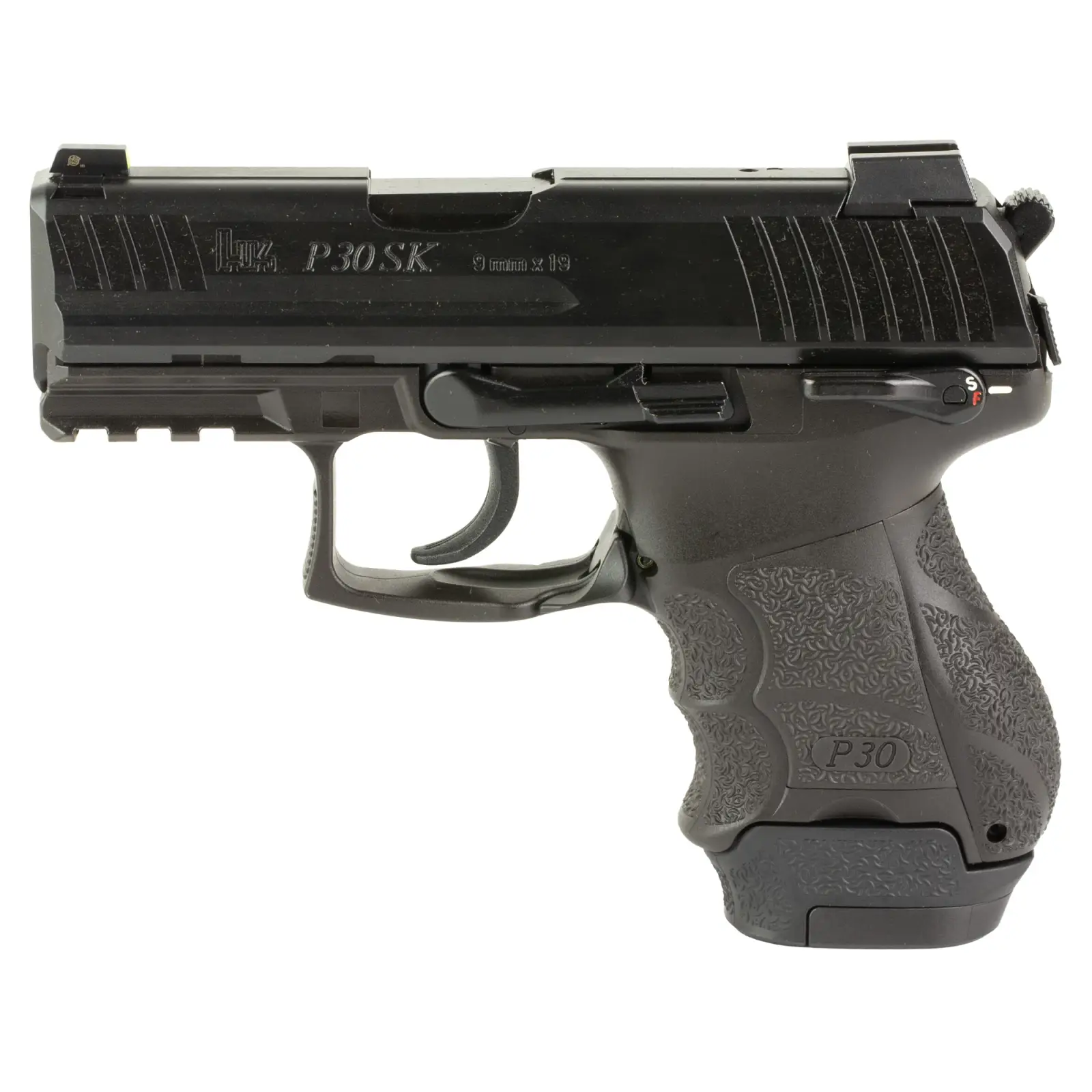 The subcompact version of the well-known P30 handgun, the P30SK (SubKompact) series, has all the popular features of the larger P30 and P30L pistols but in a smaller, more concealable size. The fully adjustable P30 grip, featuring interchangeable backstraps and side panels, is also used in the compact grip frame of the P30SK. This allows for easy customization to fit any user. Variant 3 models are DA/SA.
