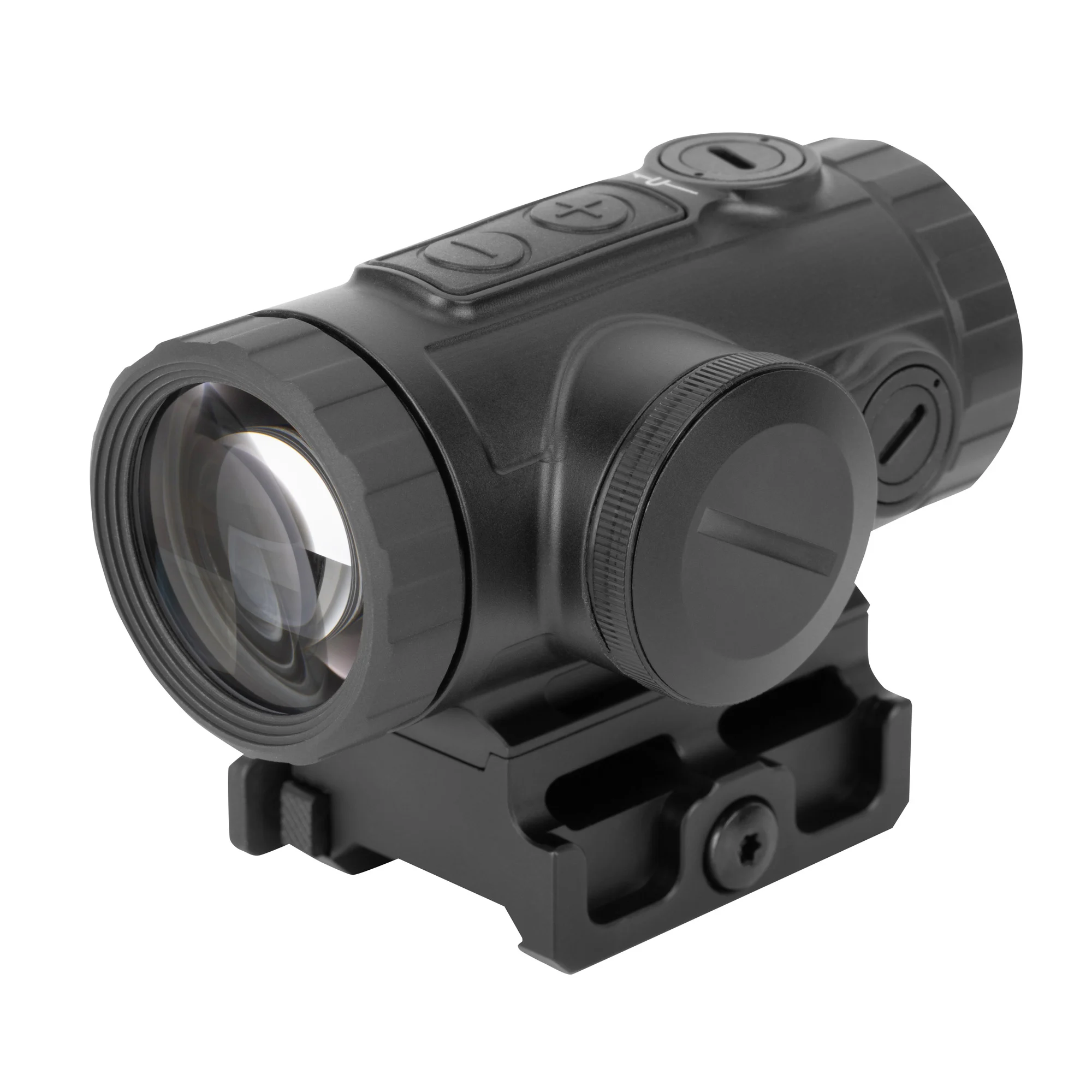 MP3X is a rugged 3X, fixed magnification, micro-sized prism optic designed for speed at closer distances and accuracy at intermediate distances. MP3X features a 7075-aluminum housing with a prism optical system to produce a brilliant sight picture. The MP3X reticle is etched, astigmatism-friendly, and illuminated with both red and green and features BDC holdovers with ranging functionality.