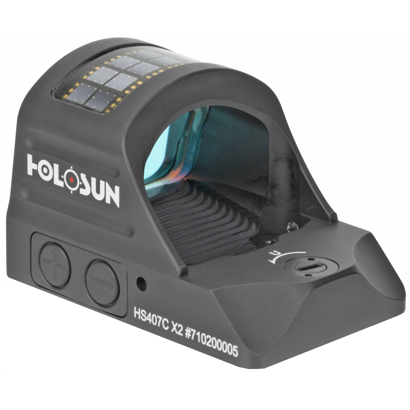 Holosun Technologies, 407C-X2, Red Dot, 2 MOA, Black, Side Battery, Solar Failsafe, Mount Not Included