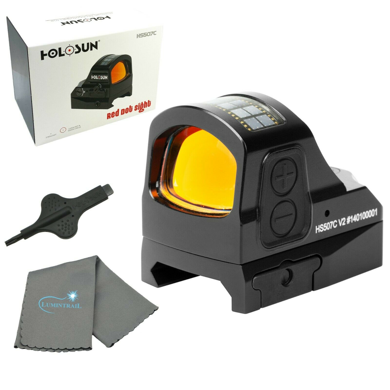 The HS507C is an open reflex optical sight designed for pistol applications. Features include Holosun's Super LED with up to 100k hours battery life, Multi-Reticle System, Solar Failsafe, and Shake Awake.