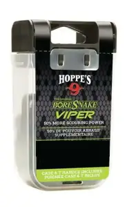 The original fastest bore cleaner on the planet has a new home. Hoppe's BoreSnake Den is a compact carrying case with a built in handle for easy storage between firearm cleanings. It conveniently fits in a range bag or backpack to protect your Boresnake brushes during transport. The lid of the Snake Den doubles as convenient pull handle that snaps into the clear case for storage. A one pass solution, BoreSnake uses an integrated bronze brush to scrub out carbon fouling, while the tail clears the barrel of loose debris with a surface area 160x larger than a standard patch.
