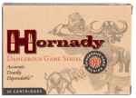 Hornady Dangerous Game Series ammunition is designed specially for a large game and safari hunting. The Dangerous Game Solid bullets are made with a hard lead/antimony alloy cone, surrounded by a copper clad steel jacket. The bullets feature a flat meplat for straighter penetration and create more energy transfer than a simple round profile bullet.