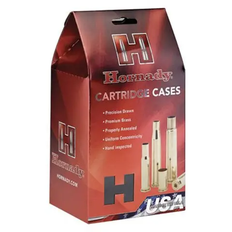 Hornady's brass cases offers re-loaders excellent uniformity in wall thickness, weight, and internal capacity. The cases allow proper seating of the bullet, not only in the case, but in the chamber as well.