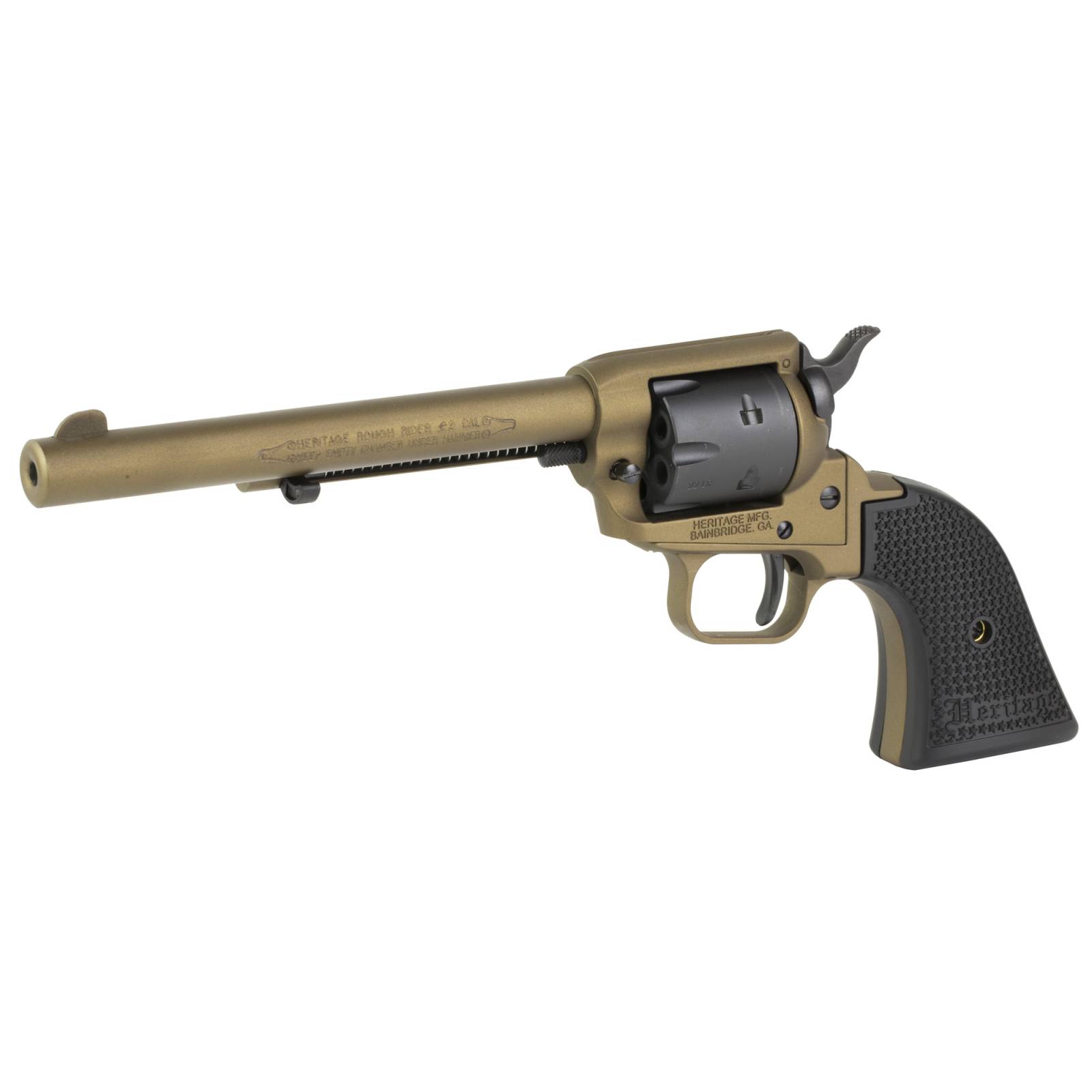 The Heritage Mfg. Rough Rider 22 LR 6.5in Barrel 6rd Bronze. With its classic design and powerful .22 LR cartridge, this revolver is perfect for target shooting and plinking. The 6.5-inch barrel ensures increased accuracy and range, and the bronze finish adds a touch of class to this already impressive firearm.