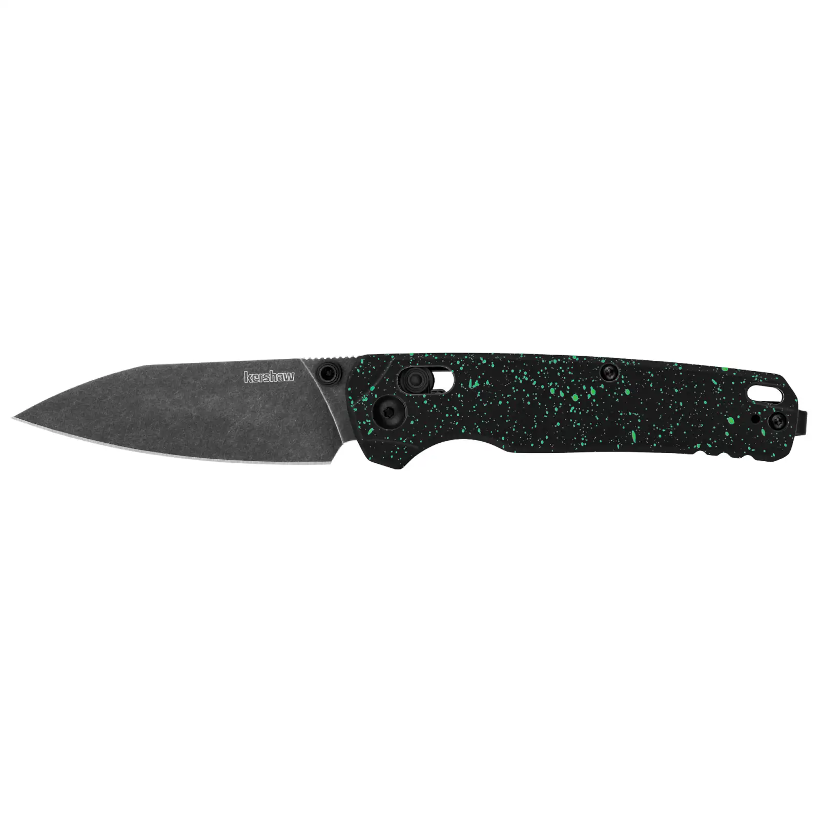 Kershaw Bel Air, Folding Knife, 3.1" Plain Edge Reverse Tanto Blade, 7.3" Overall Length, DuraLock, CPM MagnaCut Blade Steel, Custom Island Green Splatter Handle, Black-oxide BlackWash Finish, Black Blade 6105IG