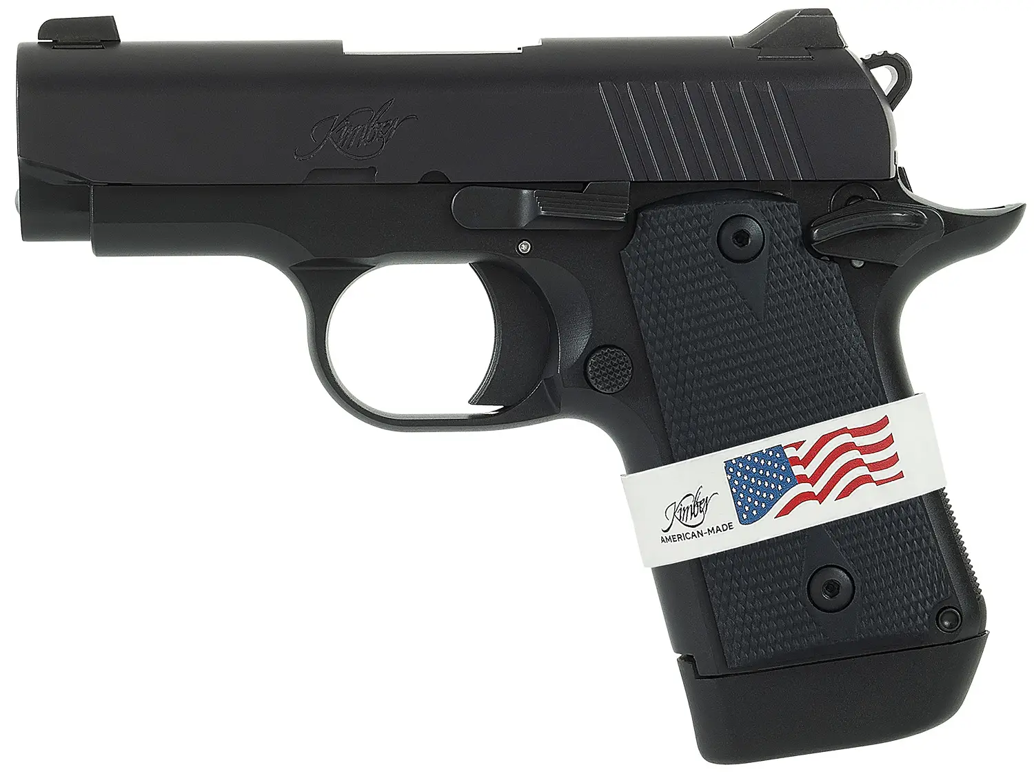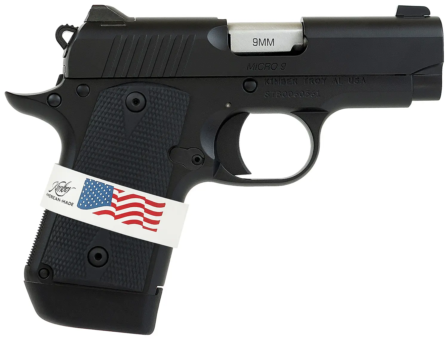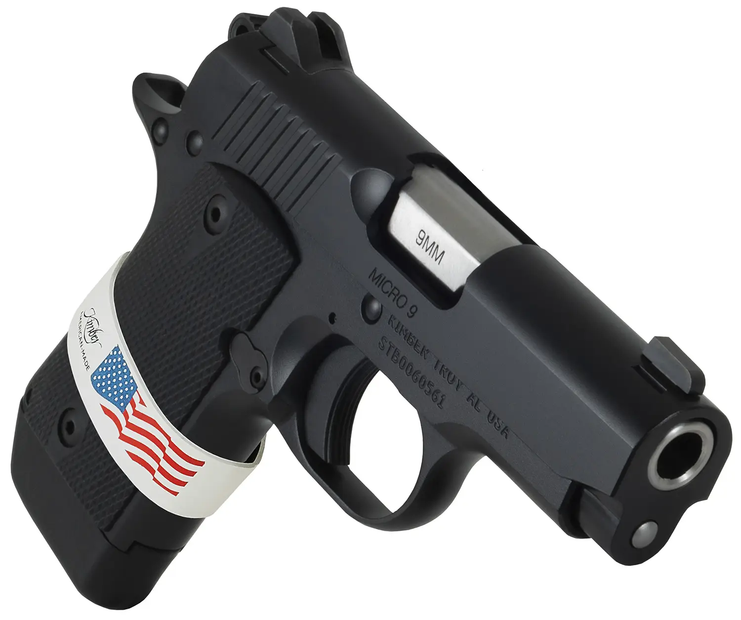 The Micro 9 Liberty features a machined-aluminum frame with a Black KimPro II finish. It has an 8 round capacity with a 7 round magazine feeding a stainless steel 3 inch barrel wrapped in a stainless steel slide with a Black KimPro II finish. Release the hammer with a 7 pound trigger pull that breaks crisp and clean via it's flat-faced design.