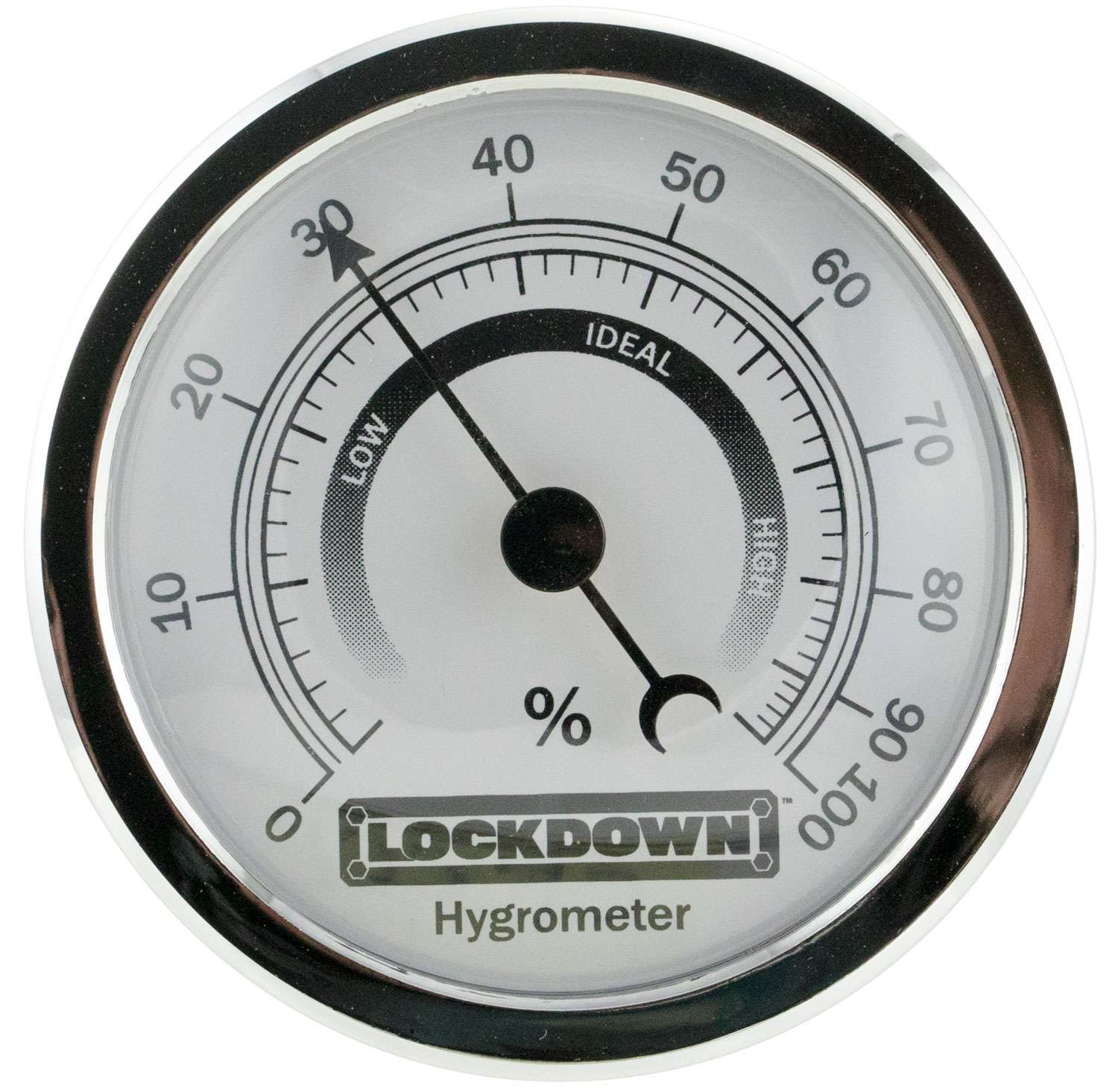 Managing humidity is critical to protect and preserve the condition of firearms. The Lockdown Hygrometer provides accurate relative humidity readings at a glance. It mounts easily with included fastener and hook/loop.