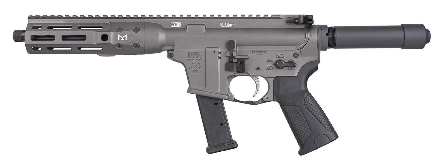 LWRC ICP9TG8 IC-9 9mm Luger 33+1 8.50" Black Nitride Steel Barrel, 6" M-LOK Handguards, Tungsten Gray Cerakote Aluminum Integrated Rail Base Receiver, Black Synthetic Pistol Tube, LWRC Ultra Combat Grips, Ambidextrous, Glock Mag Compatible