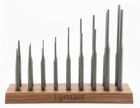 This set contains a full selection of top-quality steel punches for all your gunsmithing needs. The custom walnut bench block is engraved with each punch size to keep your punches organized for quick access.