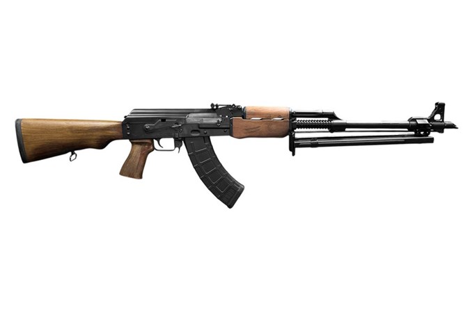 The Zastava M72 RPK is a semi-automatic rifle chambered in 7.62x39mm, built as a civilian version of the classic RPK light machine gun. Featuring a heavy 21-inch finned barrel, it is designed for improved heat dissipation and sustained accuracy during extended shooting sessions. Its robust construction and proven design make it a reliable choice for enthusiasts of military-style rifles.