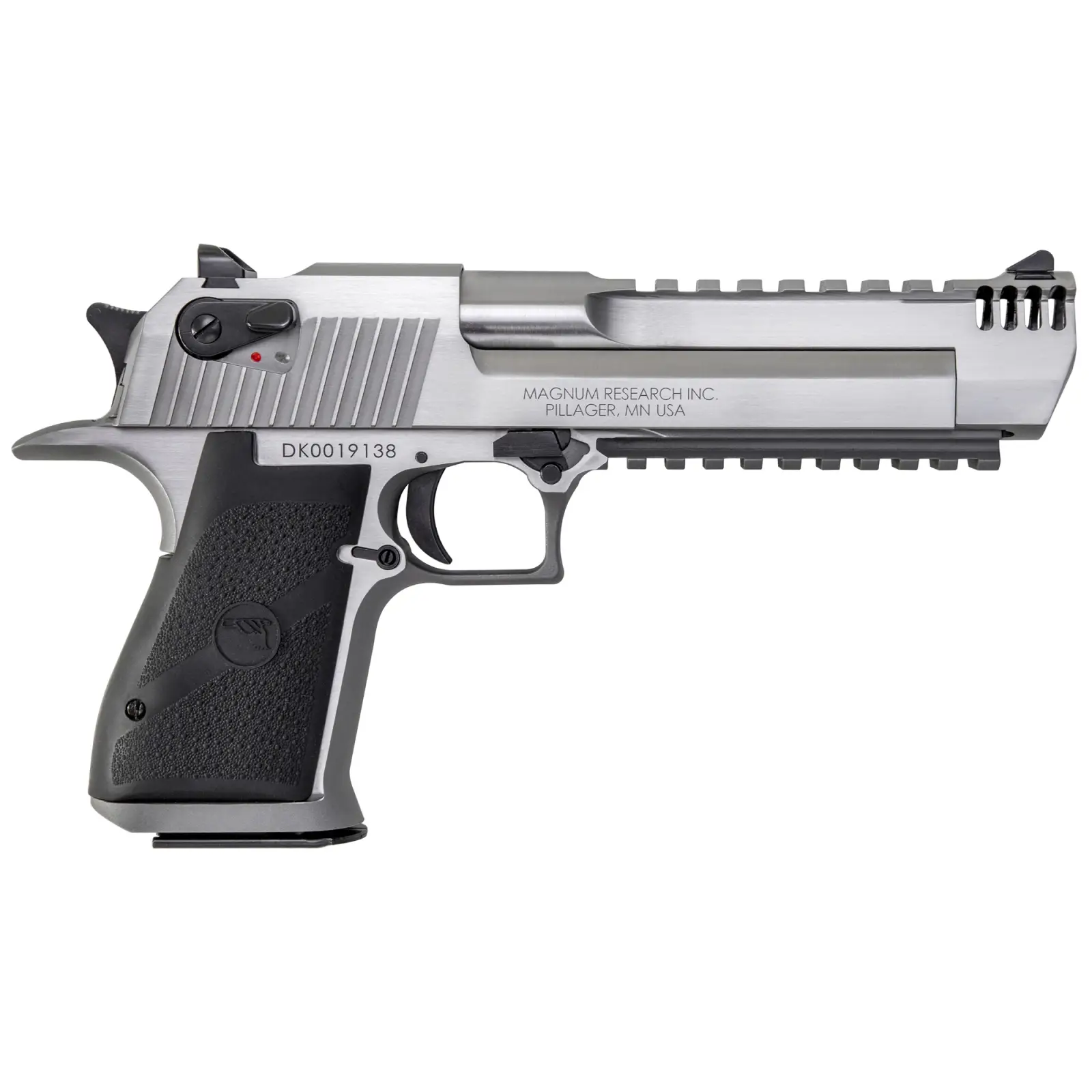 After 25 years of being accessorized, customized and re-imagined in countless movies, television shows and video games, the Desert Eagle Pistol has emerged as a pop-culture icon. You can customize your Desert Eagle Pistol with a variety of impressive finishes to add your own distinctive twist to this timeless firearm. All models feature a full Weaver style accessory rail on the barrel from the end of the chamber to right behind the front sight and standard ambidextrous safeties. Includes one 7-round magazine.