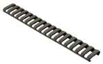Made in the USA, the Ladder Panels offer very low-profile 1913 Picatinny rail coverage. The Santoprene material provide a rubbery surface for improved weapon control and rail protection. Easily cut for custom lengths, each panel fits one side of a carbine-length rail (18 slots). One panel per package.
