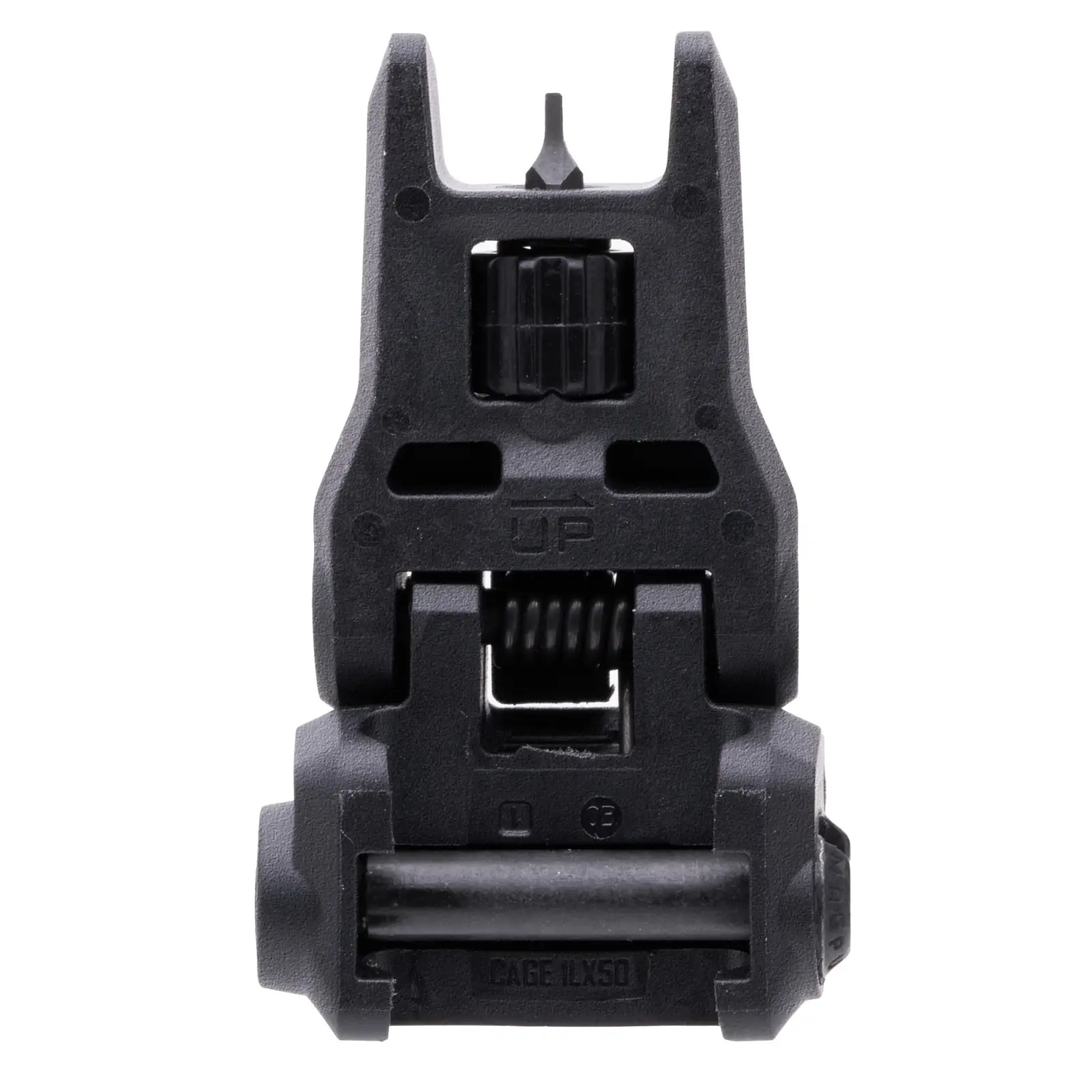 This sight features Magpul’s proven spring-loaded ambidextrous push-button deployment and sits at standard AR height when deployed. It also offers tool-less elevation adjustments and a dual-width enhanced front sight post similar to the MBUS Pro, providing quick, precise aiming.