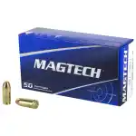 The Magtech 40 S&W 165 Grain FMJ Flat Nose ammunition comes in a 50-round box, designed for reliable performance and consistent accuracy. Each round features a 165-grain full metal jacket (FMJ) flat-nose bullet, which is ideal for target shooting and training purposes.