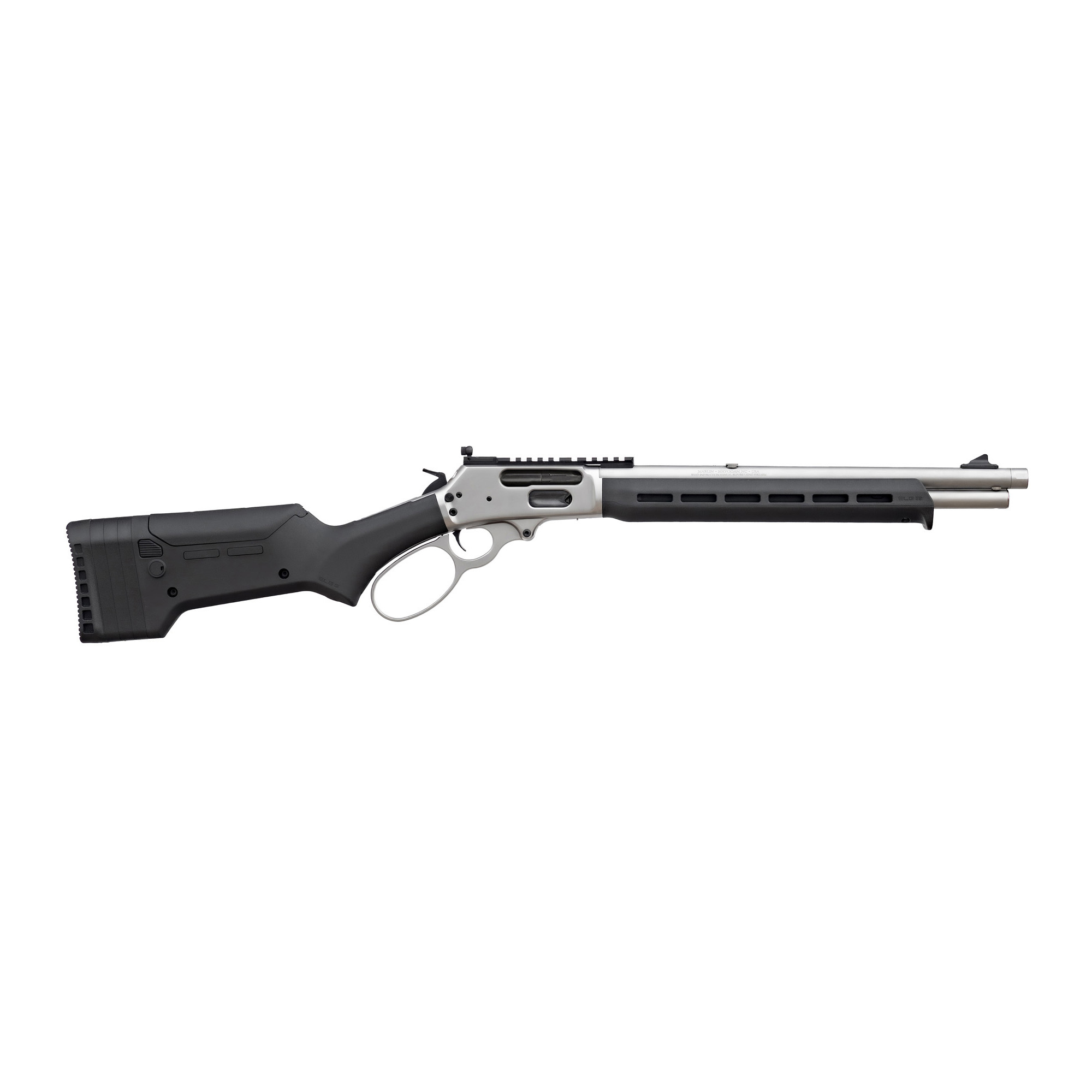 Marlin Firearms, 1895, Trapper, Lever Action Rifle, .45-70 Government, 16.17" Cold Hammer Forged Barrel, Threaded 11/16x24, Stainless Finish, Silver, Black Magpul ELG Stock and M-LOK Forend, Skinner Blade Front Sight, Skinner Adjustable Rear Sight, 5 Rounds