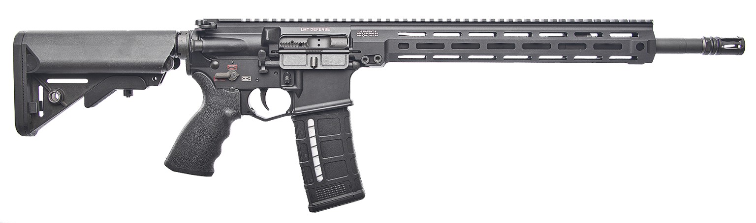 Utilizing the LMT® patented Monolithic Rail Platform, MRP™. The only true monolithic rail platform, milled from a single solid piece of aerospace aluminum forging. It utilizes two locking bolts accessible from the side of the receiver to lock in the barrel extension. This patented technology engages the barrel extension for a full 360 degrees around the extension and makes the barrel removable within seconds with a return to zero of the same barrel. One receiver can utilize numerous barrels of varying length, material, and caliber.