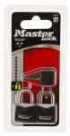 The Master Lock 121T Covered Solid Body Padlocks feature a 3/4"(19mm) wide black vinyl covered body for scratch and corrosion resistance. The 5/32" (4mm) diameter shackle is 7/16"(11mm) long and made of steel, offering resistance to cutting and sawing. Features 3-pin cylinder, matching colored key head for added convenience.Keyed alike - same key opens both locks. Sold in Package of 2.