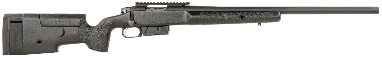 The TAC-308 is chambered in 6.5 Creedmoor with a Medium-Heavy, match-grade 24" stainless steel barrel with threaded cap. The McMillan Firearms tactical stock features a spacer system, integral adjustable cheek piece, and flush mount swivel cups. The TAC-6.5 includes a detachable box magazine.