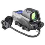 The MOR by Meprolight is a multi-purpose reflex sight used be the IDF as well as other Special Forces units around the world. The MOR features a unique combination of aiming systems: a holographic reticle, a visible laser (in either red or green), and an infrared laser for use with night vision goggles. The holographic reticle is illuminated with three independent systems: a fiber optic light collector for daytime use, a tritium lamp for use in dark environments, and an adjustable LED emitter for an extra bright reticle. This means that the MOR will continue to function in the unlikely event that one of the illumination sources fail or if the batteries are low or completely dead. The LED emitter and two lasers are powered by two independent and commonly available AA batteries, and can function even when one is out of power allowing greater runtime and providing an added level of security. The MOR's dual lasers can be activated by a PTL cable switch that can be positioned at various points on the host weapon for quick access, and will activate the laser (either visible or IR) for as long as the switch is held down. The user can select either the visible laser or IR laser via a multi-position switch on the body of the MOR. Another advanced feature of the MOR is single bore sighting mechanism. This allows the operator to zero one of the systems (reticle, visible laser, or IR laser), and the rest of the systems will automatically zero in at the same time.