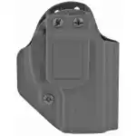 Mission First Tactical Minimalist Holster is a low-profile holster with all the performance and reliability of a full-size holster. For use Inside the Waistband (IWB) in the Appendix and 5:00 positions. Both right & left-hand positioning is accomplished with the removal of the claw and use of provided spacer. The claw, for right-handed shooters, keeps the heel of the firearm pressed into your side minimizing its print. The famous audible click with added side retention makes each draw smooth and secure ideal for Concealed Carry. Each holster is handmade to precise tolerances for each model of handgun using the most advanced techniques and materials for an all-day comfortable carry. Holsters include a Tuckable Belt Clip that accommodates a 1.50" belt. Or remove the clip and claw and add a static-line tether keeping the trigger secure while using the firearm inside a night stand safe, purse, briefcase, vehicle console, etc.