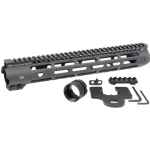 Made in USA, the Slim Line M-Lok Handguard is constructed of 6061 aluminum with a continuous 1913 Picatinny top rail, two integral anti-rotation QD sling sockets, and three sides of M-Lok. This free-float handguard also utilizes a 4140 heat treated barrel nut, 4140 heat treated torque plate, and is fully dehorned and deburred. It includes a barrel nut, wrench, and 5-Slot polymer M-Lok rail.