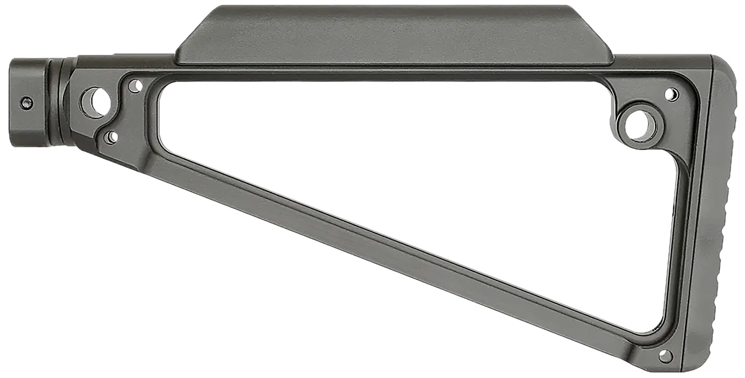 Fixed postion, features 5 QD sling attachments. Stock is made from Hard Coat Anodized 6061 Aluminum, cheek piece and butt pad made by Midwest Industries, polymer cheek piece and rubber butt pad for better comfort. Adds 9 to overall firearm length, complete assembly weight: 11 oz.