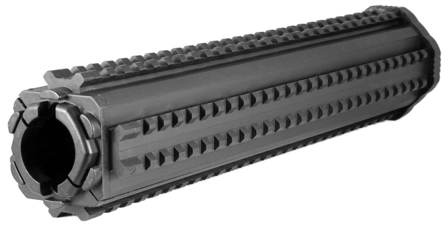 This two-piece handguard provides a four-sided Picatinny rail system for AR15/M16/M4. It features screwless installation, held in place by Delta ring and handguard cap. Thermal rail covers are included. Constructed of high-density polymer. M44L is for 12" rifle handguard replacement.