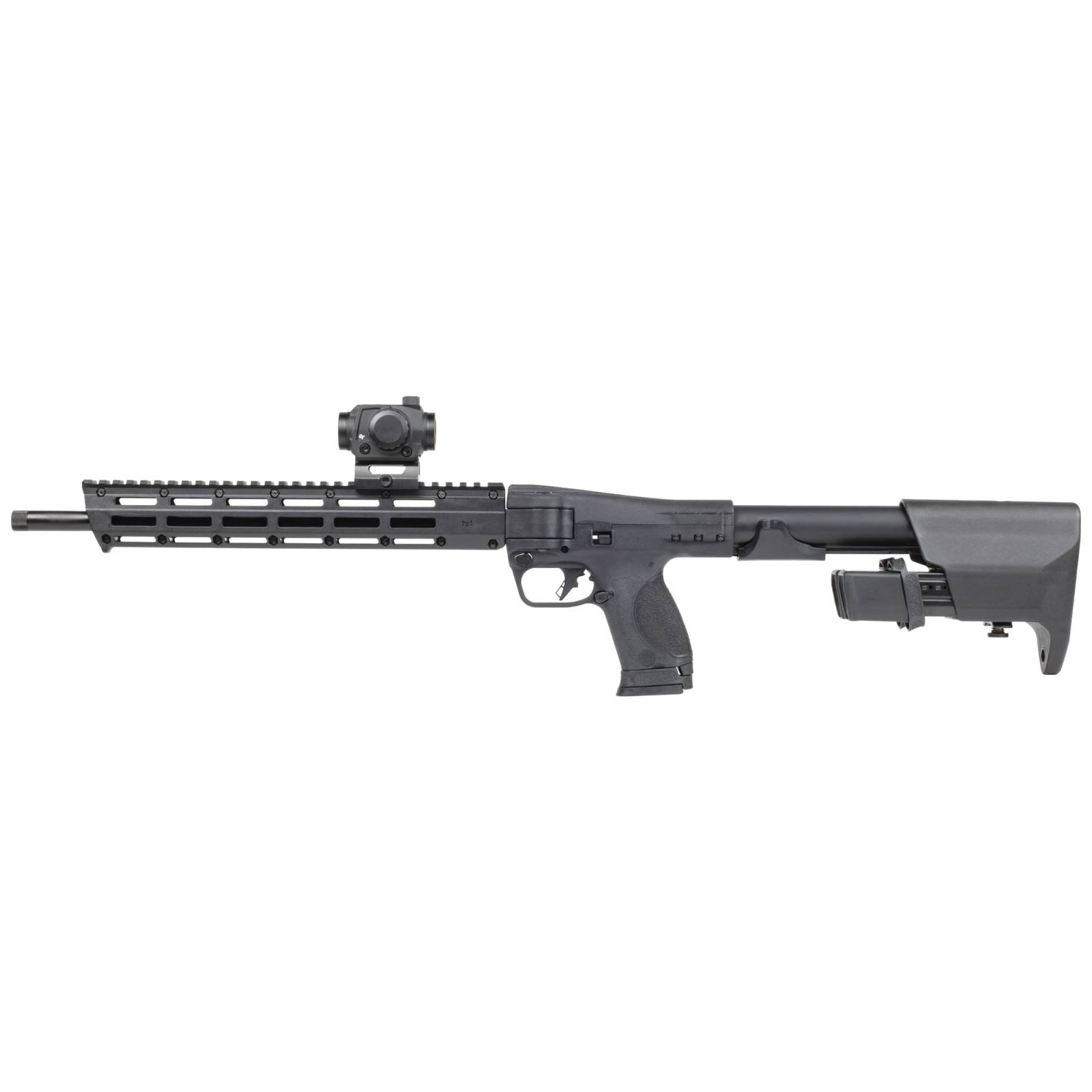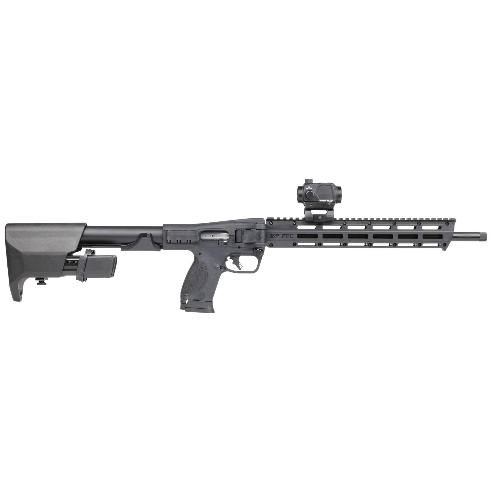 Smith & Wesson, M&P FPC, Semi-automatic Folding Carbine Rifle, 9MM, 16.25" Barrel, Threaded 1/2x28, Anodized Finish, Black, Flat Faced Trigger, (4) Interchangeable Palmswell Grip Inserts, Free Float M-LOK Handguard, Optics Ready, Includes Crimson Trace Red Dot Sight, Fixed Stock Stores (2) Magazines, 3 Magazines, (2)-23 Round and (1)-17 Round.