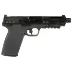 The Smith & Wesson M&P 5.7 will light up the range and quicken your pulse. With its rotating 5" Tempo Barrel System, the M&P 5.7 utilizes the ballistics of the 5.7 x 28 round in tandem with the repeatability of the Tempo System. Get worry-free consistency, in a 10 Plus 1 handgun. Take control and feel the fast!