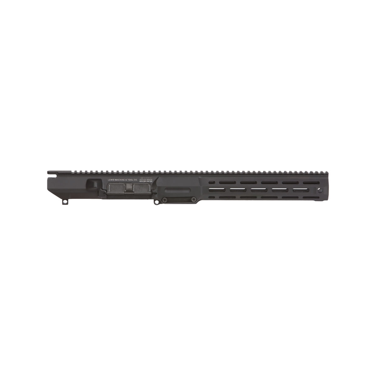 The patented LMT Monolithic Rail Platform, MRP™ upper receiver. The receiver and handguard are made from a single piece of aerospace grade aluminum. The barrel is held in place with a proprietary locking system that utilizes two locking bolts accessible from the right side of the receiver. The only tool needed is a standard T-30 Torx bit to tighten the bolts. This receiver requires the patented LMT monolithic barrel assembly which has a low profile gas block with straight gas tube.