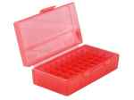 MTM's P-50 series features a flip-top lid and is molded to hold 50 rounds of ammo in a neat 5x10 grid. These ammo boxes have a textured surface for gripping and a grooved lid designed to for easy stacking. Choose from five sizes in multiple colors. Each box is supplied with a load label for at-a-glance organization.