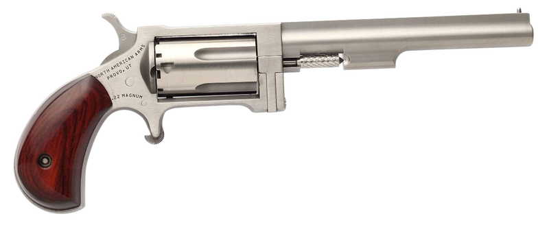 The single-action Sidewinder Mini Revolver features a swing-out cylinder connected to a frame-mounted crane arm. This feature makes reloading a much faster and simpler process. This model Sidewinder is available in .22 Mag only with a 4" barrel, stainless-steel frame, laminated rosewood grips, and a stainless steel post front sight. *Note- This model is CA Compliant.