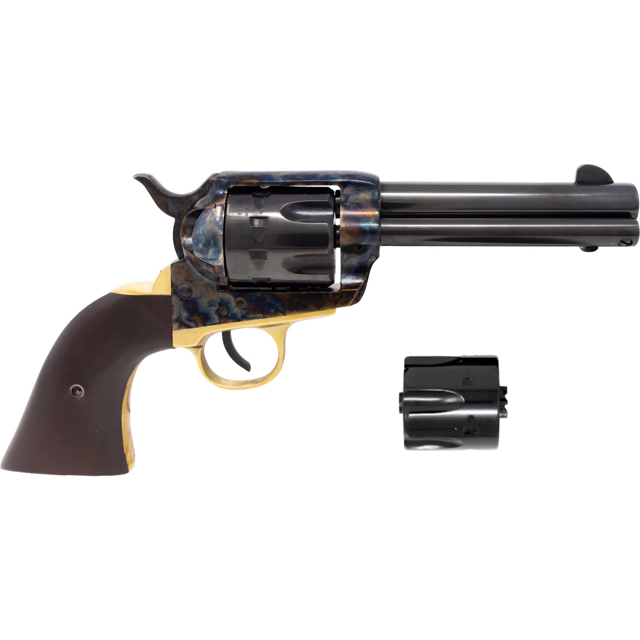 The Clementine—where classic Western heritage meets modern precision. The Clementine’s versatile .22LR/.22WMR 10-round cylinder combo ensures you’re always ready for any challenge, and reliability you can count on. Choose between either a 4.75” or 5.5” barrel length to suit your style and shooting needs. The walnut grip provides a timeless touch of luxury, perfectly complementing the rugged beauty of the color case hardened frame. With its brass backstrap and trigger guard, The Clementine is not just a firearm—it's a masterpiece. Experience the thrill of the Wild West with The Clementine, your ultimate companion for accuracy and adventure.