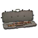 The double gun case has patented pillarlock system to protect firearms. Holds two scoped rifles with large objectives lenses. Six heavy duty latches. Overmolded flexible handle. Is lockable and airline approved. Poly tie-down straps hold firearms in place.