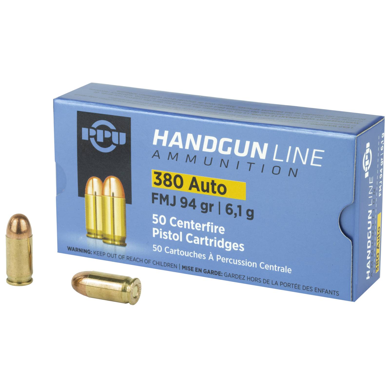PPU PPH380AF HANDGUN 380 ACP 94 GR FULL METAL JACKET (FMJ) 50 BX/ 20 CS