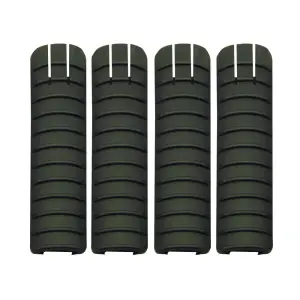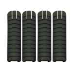 Made in the USA, the polymer panel covers 1913 Picatinny rails, protecting the rail when not in use. The panel cover provides a secure and comfortable gripping surface. They are constructed of a black polymer and may be custom fit shortened to cover specific lengths of exposed rails. Package includes (4) rail panels.