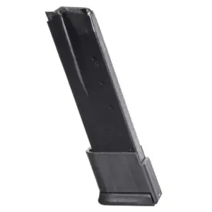Made in the USA, the Ruger SR45 mag is constructed of heat-treated steel with a blued finish, injection molded mag follower, and a chrome silicone wire.